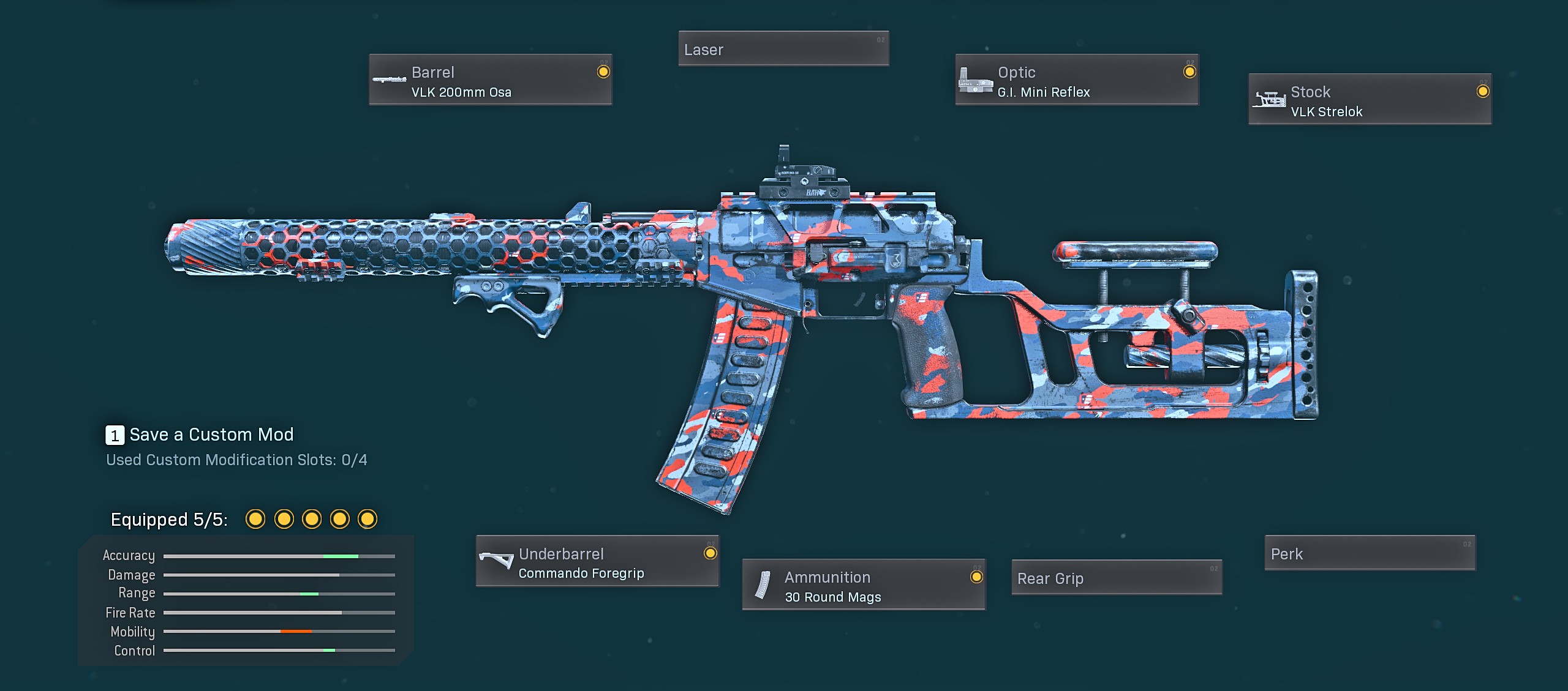 Az első a Barrel, ami a VLK 200mm Osa, ami magába foglalja a monolithic suppressor-t, szóval nagyobb hatótávolságot ad a fegyvernek a hangtompitás mellé. A következő a 30-as tár, az alap egy 20 töltényes, ami sajnos nem elég néha 1 emberre sem. Szóval ez a két dolog elengedhetetlen az AS Val számára.