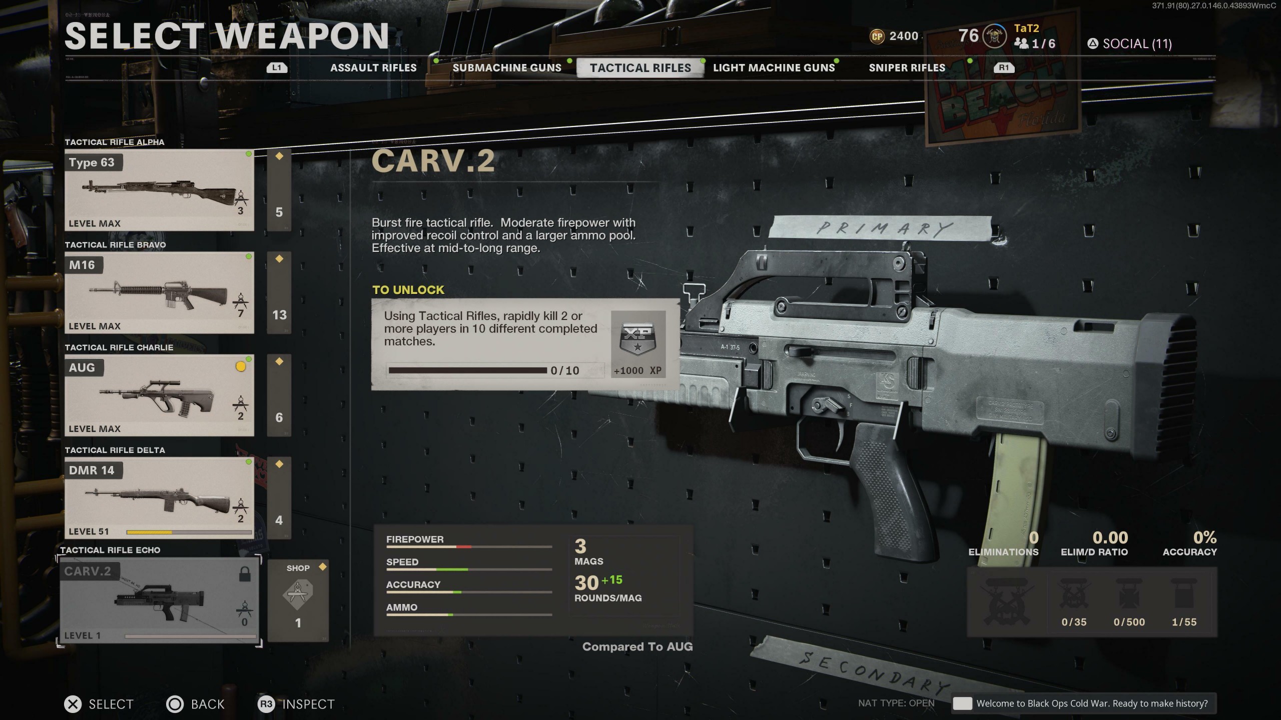A CARV.2 feloldásához meg kell ölnöd két vagy több játékost (egymás után) 10 különböző befejezett mérkőzésen, tactical rifle használatával.
