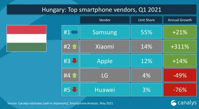 Ennek fényében lesz érdekes megfigyelni kifejezetten a magyar lebontást, ahol némileg már más a helyzet, mint globális szinten. Magyarországon szintén a Samsung került az első helyre, a második viszont nem az iPhone, hanem a Xiaomi. A mindenki szerint menőnek számító almás telefon csak a harmadik a listán, ami valószínűleg annak is köszönhető, hogy nem éppen az átlag magyar pénztárcához igazítják a készülékek árait.