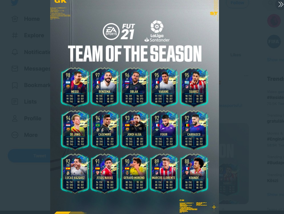 19:00 óra múlt, tehát megkaptuk a legújabb heti finomságunkat, mely a LaLiga TOTS teljes csapata.