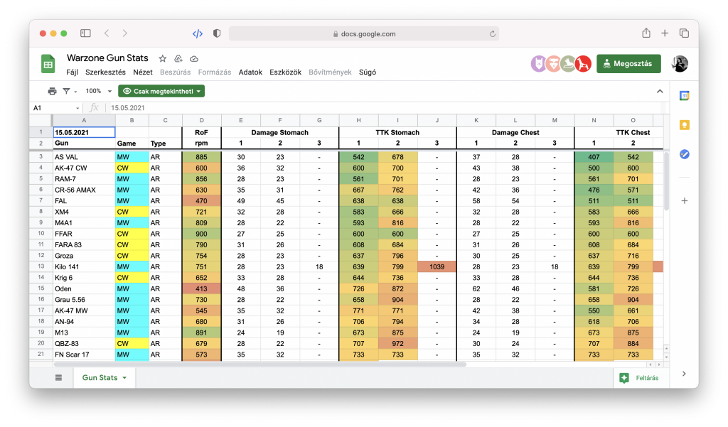 Szerencsére vannak lelkes játékosok, akik az összes fegyver adatait összegyűjtötték egy Google Táblázatban, minden fontos információval megfűszerezve.