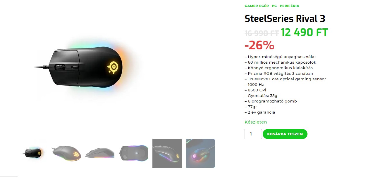 A SteelSeries Rival 3 most 26 százalék kedvezménnyel csak 12 490 forint.