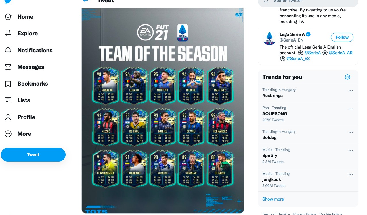 Átléptük a 19:00-át, tehát kézhez kaptuk a legújabb TOTS válogatást, ami a Seria A legjobbjait mutatja be 2020/21 szezonra vonatkozóan.