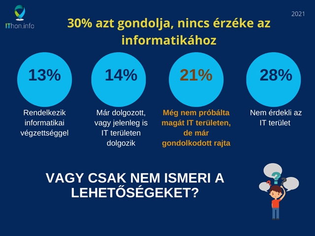 Mint kiderült, a válaszadók 30 százaléka úgy gondolja, hogy nincs érzéke az informatikához, ezért nem is szeretne IT területen dolgozni.