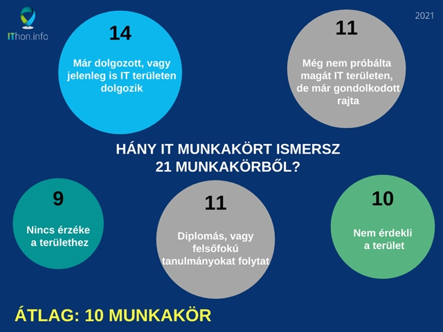 Ezzel persze nincs is semmi baj, hiszen attól, hogy hétköznapjainkban vagy a munkánkban gépeket használunk, nem kell feltétlenül IT szakmában elhelyezkedni. A felmérés eredménye viszont annyiból érdekes, hogy sokan nem is ismerik az IT szakmákat, így eldönteni sem tudják, hogy szeretnének-e ilyen területen dolgozni.