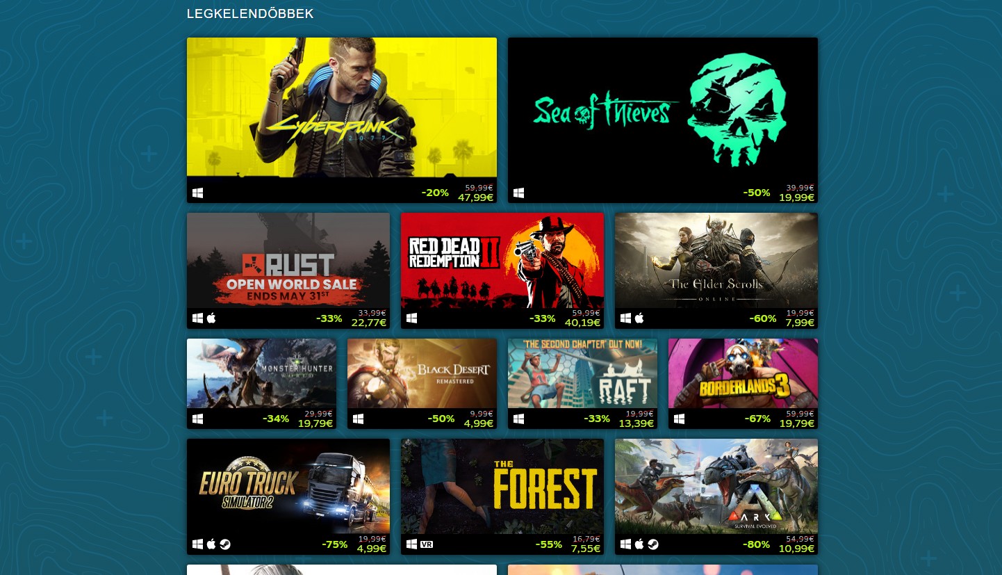 Cyberpunk 2077, Sea of Thieves, Rust, Red Dead Redemption 2, The Elder Scrolls Online, Moster Hunter World, The Witcher. Minden olcsóbb most.