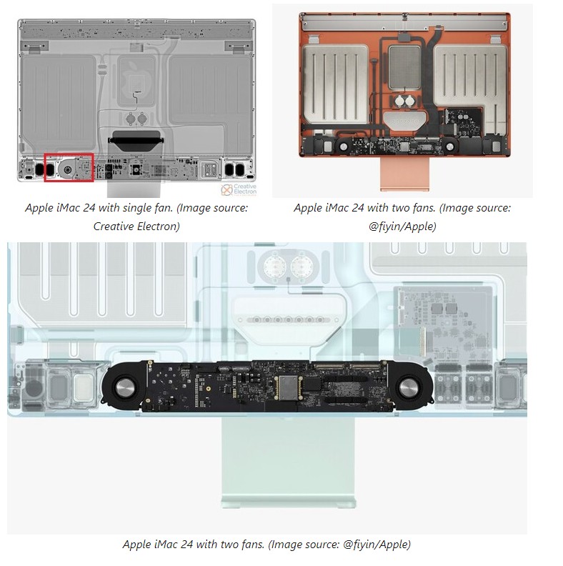 Ezzel természetesen nem is volt semmi gond, hiszen az Apple a weboldalán is feltűntette ezeket. Az iFixit csapata azonban a modellek szétszerelésénél és „röntgenezésénél” észrevette, hogy a ventilátorok száma sem egyezik meg a különböző iMac-eken. Ezt az Apple sehol sem említette, pedig akár a gép teljesítményére is hatással lehet hosszabb feladatoknál, ha kevésbé tudja lehűteni a megnyirbált hűtőrendszer.