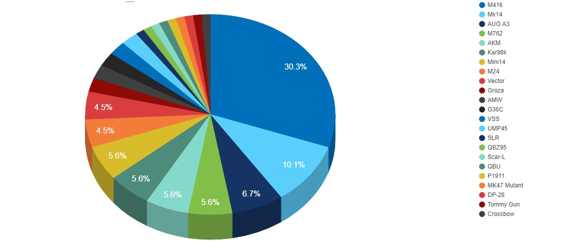 A szavazás során az M416 egyértelmű első lett, a résztvevők 30 százaléka szavazott rá. Őt követte második helyen az Mk14, de beelőzni nem tudta volna. Úgy tűnik, hogy az M416 a játék kezdete óta a magyar játékosok kedvence, pedig sokat változott a fegyver a megjelenés óta. Íme, a top 5 fegyver: