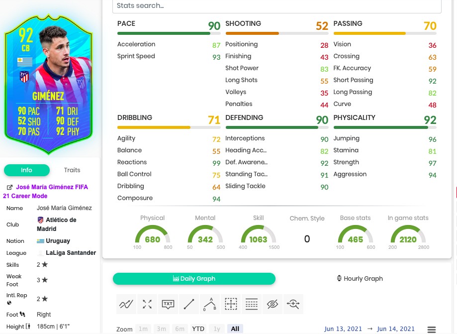 Mi lesz Godin után? – merült fel a kérdés megannyi madridi fanatikusban, erre pedig érkezett a válasz honfitársa, Giménez személyében. Diego Simeone mindenkori csapataira igaz a masszív védekezés, mely szervezettségből, illetve a mester által kreált nem hétköznapi hősiességéből ered. Giménez ennek az évek óta tökéletes teljesítő védelemnek a sarokköve, alapja. Amellett, hogy kiválóan olvassa a játékot, agresszív, kiváló a légi csatákban, illetve beilleszthető a passzjátékba is. Fifa-fronton eddig meglehetősen kevés figyelem övezte lapjait. Gyakorlatilag három verziója ékesíti a terjedelmes játékos palettát, amik mind a játék első hónapjában kerültek beiktatásra. Rendelkezik egy BL, sima Rare Gold, illetve egy Rule Breakers kártyával, ideje volt a tuningnak!