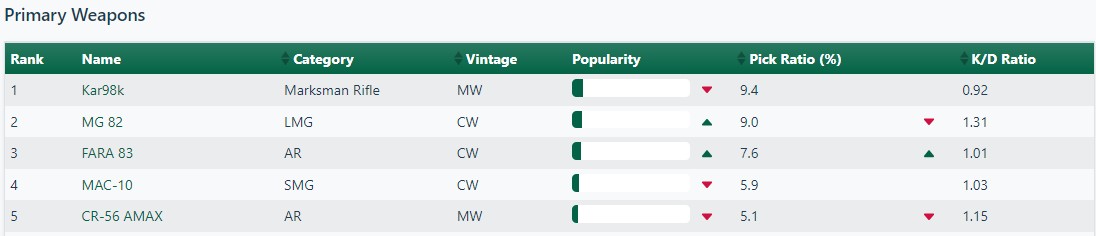 Amint láthatjuk, a félelmetes MG 82 mellett a FARA is szépen csúszik fel a Wzranked listáján.