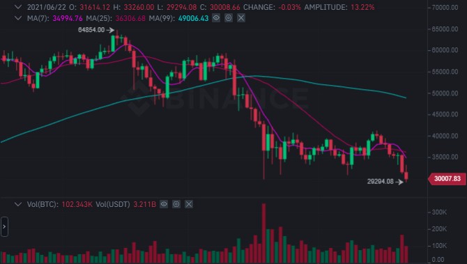 A bitcoin azóta is szabadesésben van, jelenleg a 30.000 dolláros áron próbál megmaradni, de az ether és a doge is komolyabb értékvesztést szenvedett el az elmúlt másfél nap folyamán. De nem csak ez vezetett a durva zuhanáshoz: az Agricultural Bank of China a fentiekkel szinkronban bejelentette, hogy minden olyan számlát befagyaszt, amikkel kapcsolatba hozható kriptovalutákkal való kereskedés/tranzakció – jelentette a Kriptoakadémia.