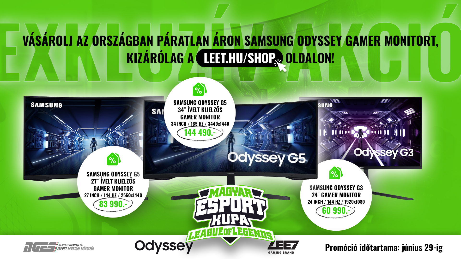 A Samsung Electronics Odyssey monitorcsaládja idén is új meglepetéseket tartogat, ám ez nem jelenti azt, hogy az igazi gamerek ne találnának őszinte és megbízható társra az Odyssey korábbi modelljeiben. Most az NGES által szervezett Magyar Esport Bajnokság egyik partnere a Samsung, melynek keretében a Leet.hu Webshopjában akciós áron kínáljuk a Samsung Odyssey modelleket.