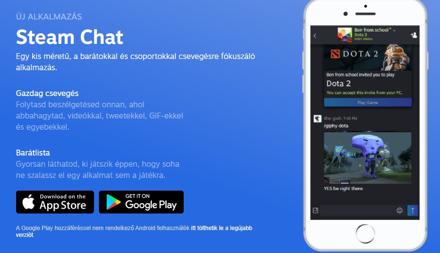 • Keresd fel a Steam mobilalkalmazással kapcsolatos weboldalát: https://store.steampowered.com/mobile