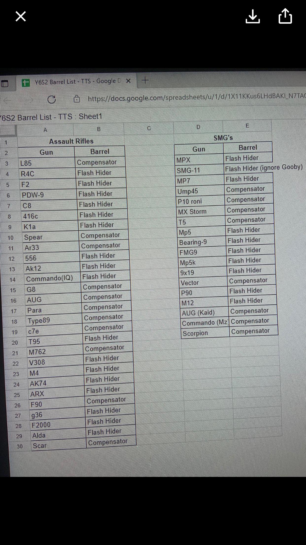 A Redditen viszont egy alapos és körültekintő játékos egy táblázatot készített, melyen listázta az AR és SMG fegyverek legjobb barrel kiegészítőit. Szerinte az adott fegyverek esetében ezek a kiegészítők a leghasznosabbak a játék során.