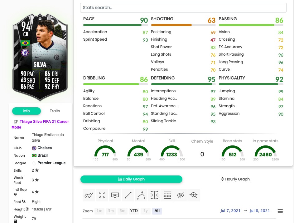 - Nem szoktam ilyet írni, de igazán nincs gyenge oldala Thiago Silva legújabb lapjának, minden fontos, valamint kevéssé fontos alstatja meggyőző tartományban áll.