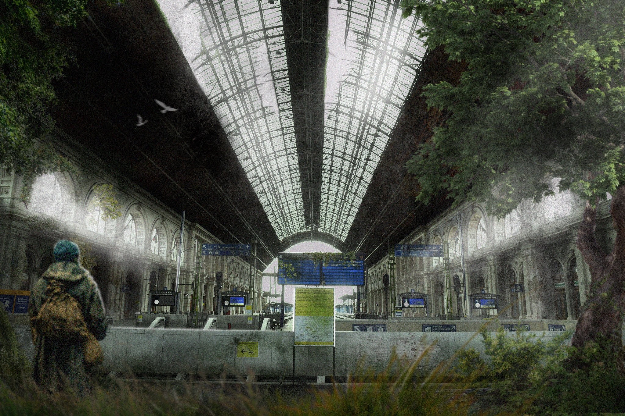 A róla szól cikk alatti komment szekcióban azonban felhívták a figyelmem egy nem kevésbé tehetséges másik művészre, aki hasonló tematikában alkot – ezúton is köszönet érte. A különbség csupán annyi, hogy ő nem lemodellezi, hanem befotózza az adott helyszínt, majd a Photoshop tudásával és a láthatólag végtelen fantáziájával alkotja képpé a poszt-apokaliptikus fővárost, na meg néha Debrecent is.