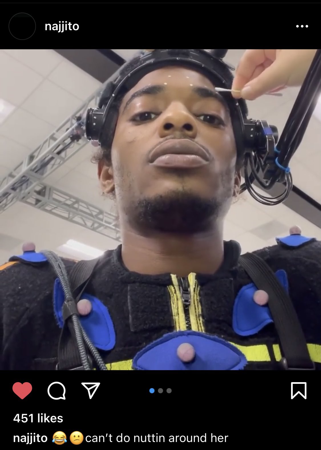 Itt láthatjuk, hogy Jeter épp egy felvételen van, méghozzá egy mocap stúdióban. Ez azt jelenti, hogy mindenképpen egy animációs karaktert készül éppen megformálni, és mivel Miles Moralesen kívül tudtommal nincsen más ráosztott szerep, ezért sokan úgy vélik,