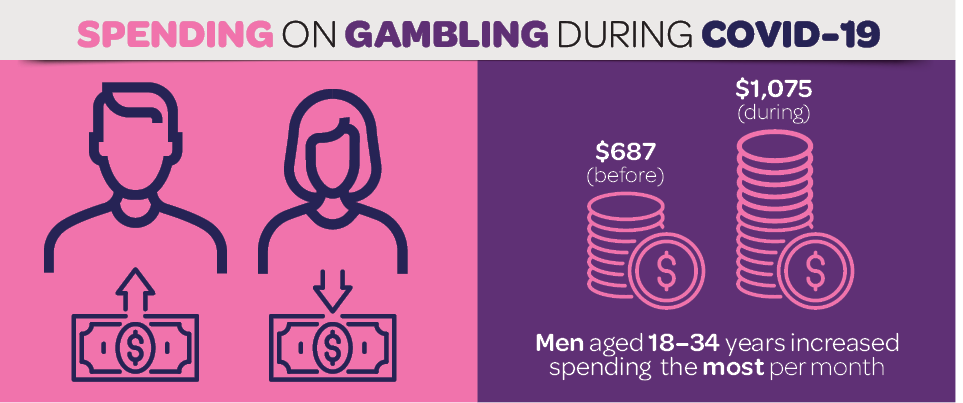 A Covid-19 előtt átlagosan 687 dollárt költöttek el havonta a 18-34-es korosztályban szerencsejátékra a férfiak, míg a járvány alatt 1075 dollárra (327 ezer forint) emelkedett ez az összeg. Rengeteg szerencsejátékkal foglalkozó szervezet és weboldal már külön segélyszolgálatot és rehabilitáló programokat indított a szerencsejátékfüggőségben szenvedő felhasználóknak.