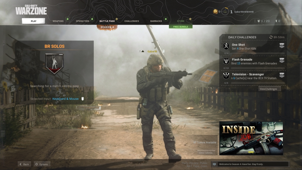 A Warzone-nál egy pillanatra elbizonytalanodtam, hiszen nem találtam opciót a 120 FPS bekapcsolására. Némi utánakeresés után kiderült, hogy a játék automatikusan felismeri a 120Hz-es beállítást így csak a bemeneti eszközöknél kellett átbillenti az egeret és a billentyűzetet a kontrollerről. FPS mutató híján nem tudunk konkrét értekekkel szolgálni, nem volt annyira stabil, mint Fortnite esetén, de így is nagyon kellemes élményt nyújtott a játék.