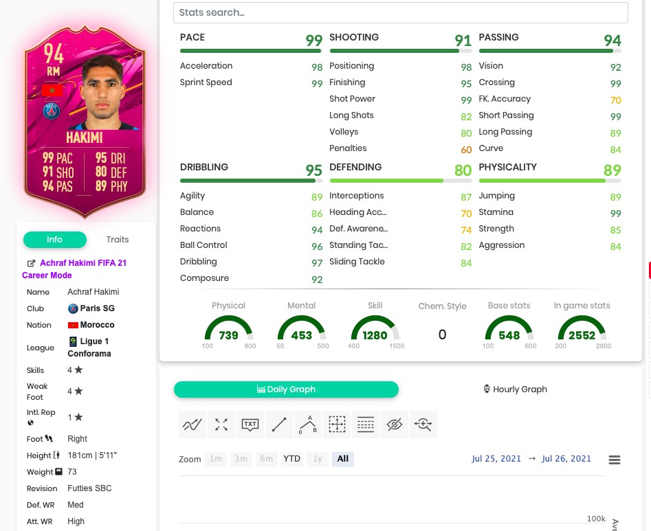 Ugyan leginkább átigazolása miatt kapott FUTTIES SBC-s lapot Hakimi, de korábban egy igazán OP lapnak számított, bár erősebb lapjai eddig elmaradtak.