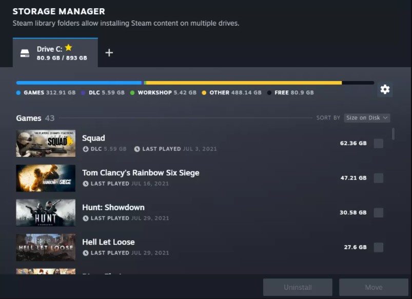 A legjobb viszont az új tárhelykezelő! Ennek hála mostantól könnyebben kategorizálhatjuk a meghajtókon a játékokat, pontosan látni fogjuk, hogy melyiket hová telepítettük, sőt, pofonegyszerűen mozgathatjuk majd őket a mappák között.