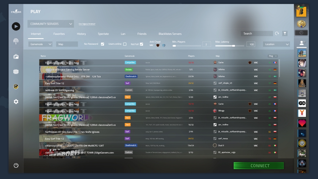 Egy játékos teljesen átalakította a CS:GO szerverkeresőjét