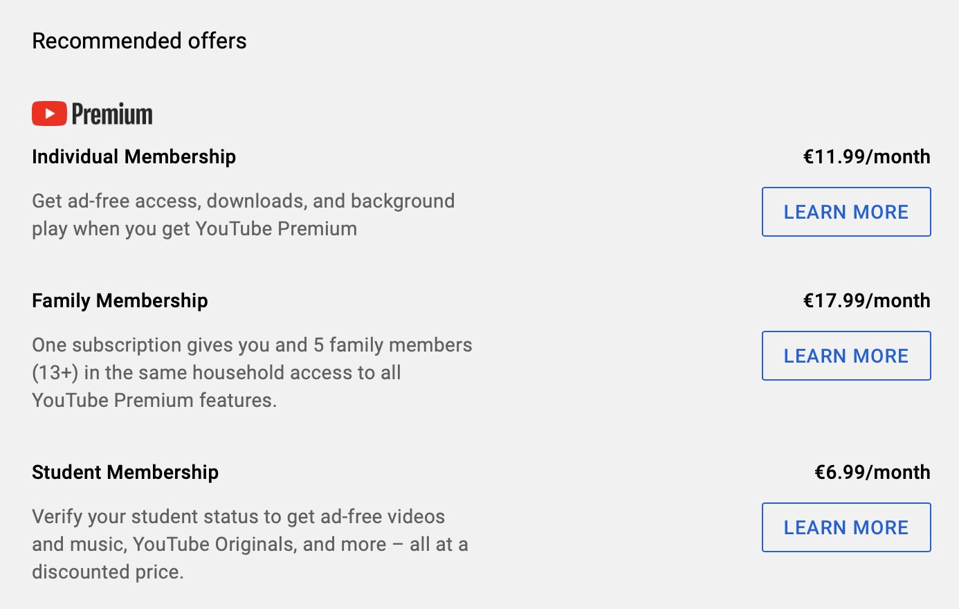 A terv szerint a Lite előfizetés nagyjából annyiba kerül majd mint a tanulói szint, ami Magyarországon 1090 forint. Vagyis jóval olcsóbb lesz mint a 2600 forintos családi csomag. Természetesen fontos tudni, hogy Magyarországon némileg más a Youtube előfizetés árszabása, mint Európa más országaiban.
