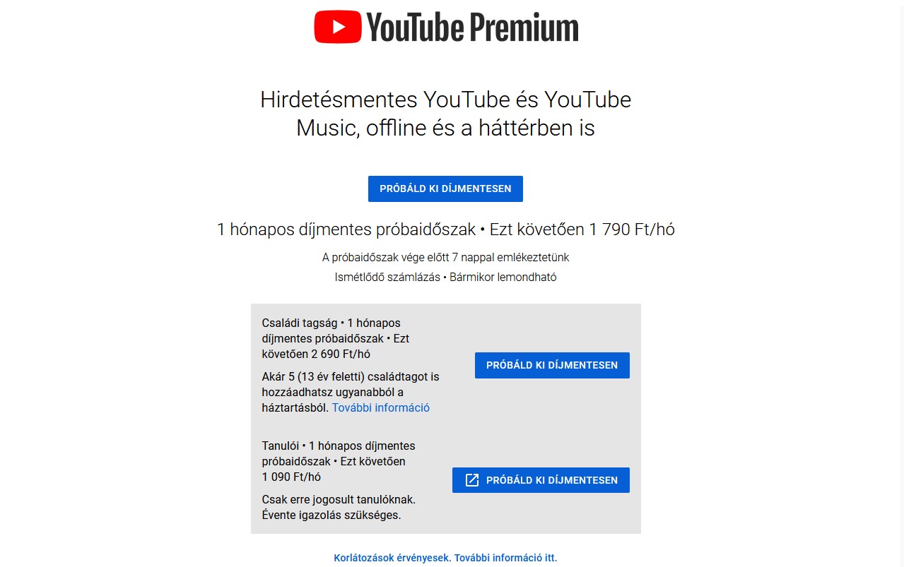 Közben a YouTube megerősítette a The Verge-nek, hogy Belgiumban, Dániában, Luxemburgban és Norvégiában is teszteli a szolgáltatást helyi árazással. Az ajánlat tehát nálunk még nem él, így nem lehet tudni, hogy milyen árszabást találnak ki neki.
