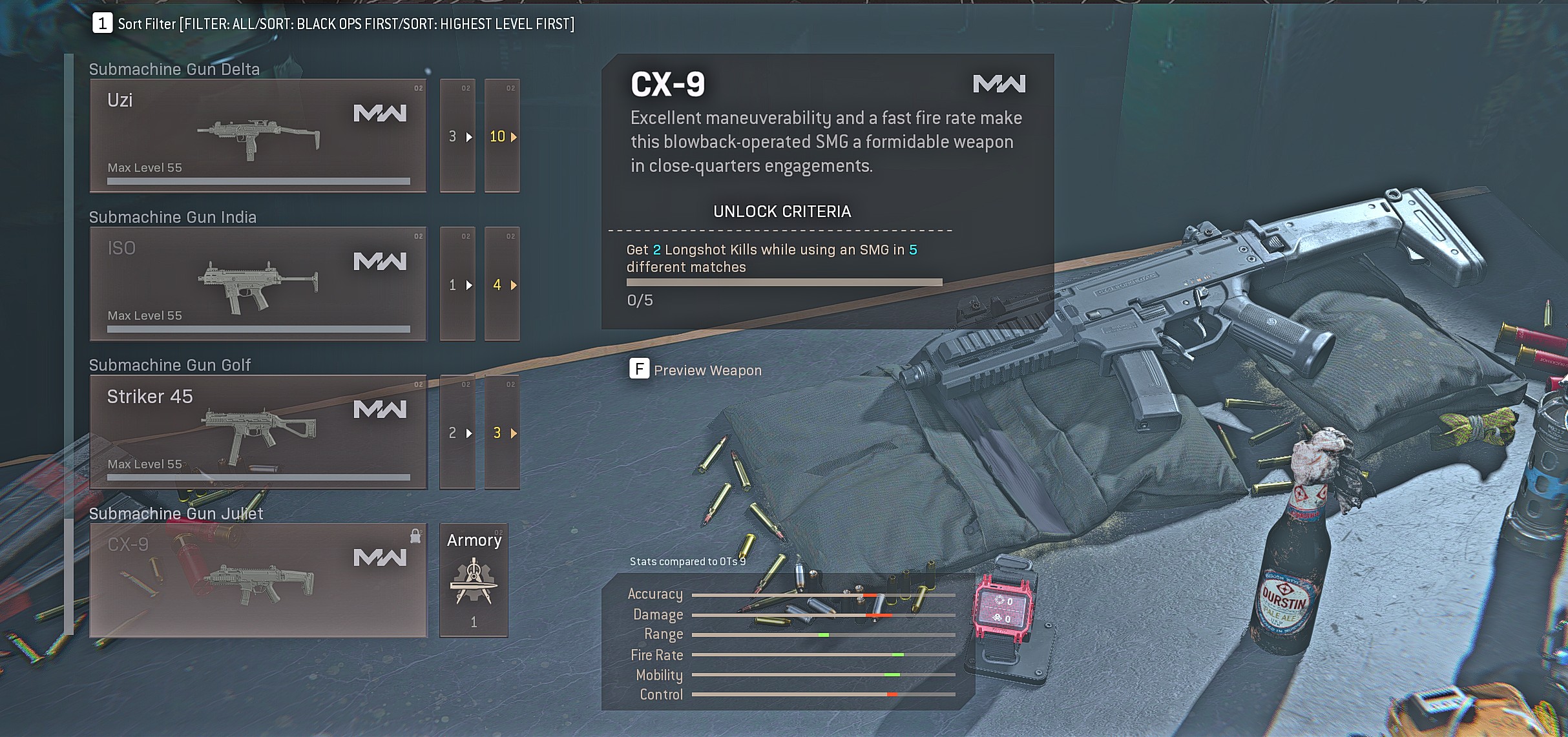 Ha fel szeretnéd oldani a CX-9-et, akkor 2 longshot killre lesz szükséged SMG-vel, 5 különböző meccsen.