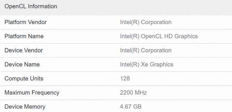 Érdemes időről időre ránézni a Geekbench weboldalára, hiszen legtöbbször itt bukkannak fel legelőször hiteles mérések a még meg sem jelent hardverekkel kapcsolatban. Ezúttal sem volt másképp, ezúttal az Intel Xe Graphics GPU-ja tűnt fel, egészen pontosan egy 128 CU egységgel rendelkező példány. Az Xe-LP szériában nincs ekkora számítási kapacitással rendelkező hardver, így úgy tűnik a Xe-HPG dedikált videókártyák legolcsóbb/gyengébb példányával állunk szemben.