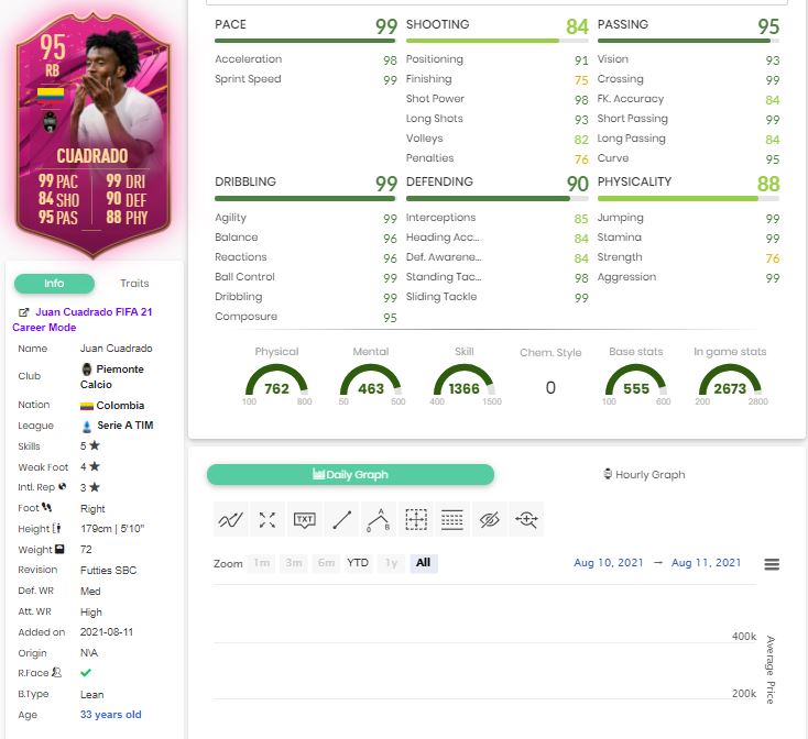A kolumbiaiért 350 ezret kér el a játék, ami egy jobbhátvédért elég drága. Pozitívum, hogy legalább nem kell fél napot szenvednünk, hogy megszerezzük és visszatértek a szokásos SBC követelmények.