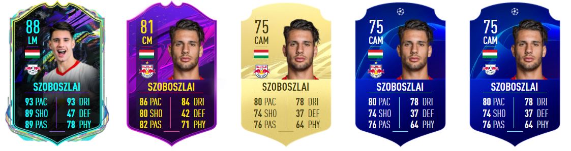 Az idei játékba 75-ös Rare Gold lappal érkezett, e mellé a kártya mellé jött egy UCL lap is, majd – amikor átigazolt az RB Leipzig-ba – megérkezett a pontos mása mindkét lapból, csak a csapat változott meg. Idén 2 speciális lapot kapott, az egyik egy 81-es Hero lap volt, ugyancsak nagyobb (86) Pace kíséretében, majd a nagy kiugrás az EA-től akkor történt, amikor elérhetővé vált a 88-as Future Stars lapja, a képen látható kimagasló értékekkel.