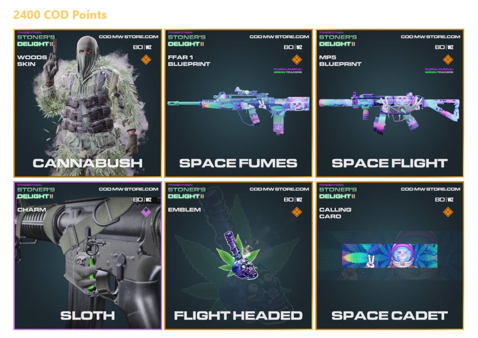 Tracer Pack: Stoner’s Delight II nevéből hamar kiderülhet a Call of Duty-tól idegen felhasználónak is, hogy bizony ez már nem az első alkalom, hogy a cég ilyennel lepi meg a játékosokat. Az előző, áprilisban megjelent csomag skinje például a Kushwacked nevet viselte.
