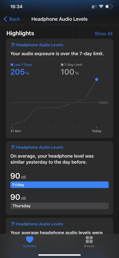 Ez talán az a veszélyforrás, melyre először gondol mindenki. A végtelenségig nem terhelhetjük a hallószerveinket az üvöltő zenével, hosszú távon bizony halláskárosodás fog fellépni. Mértékletességre kell törekednünk, érdemes megtalálni azt a hangerőbeállítást, ami még kellően hangos, ám hosszú távon sem érezzük túl bántónak. Az Apple nem is olyan rég beépített egy védelmet az iOS operációs rendszerbe, mely figyeli, hogy milyen decibellel és mennyi ideig hallgatunk zenét. Ha túl soknak érzékeli, akkor bizony korlátozhatja is a hangerőt bizonyos ideig.