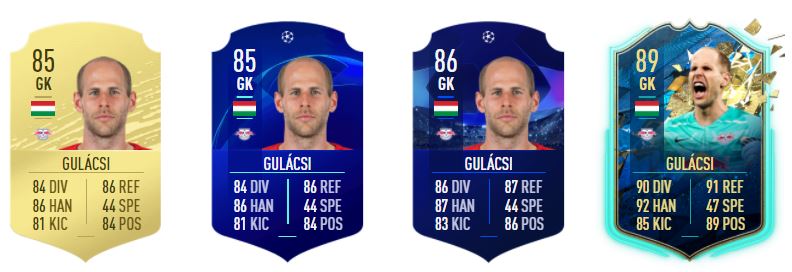 Itt érkezett el a mérföldkő Gulácsi Ultimate Team-es pályafutásában: Dzsudzsák után ő lett a 2. olyan játékos, aki 84-es szint feletti lapot kapott a játékban, hiszen Gula első lapja egy 85-ös Rare Gold lap lett. Ezt követően jött egy ugyancsak 85-ös UCL Rare lap, majd egy 86-os UCL Man of the Match, végezetül pedig megérkezett az igazi durranás: a Team of the Season So Far event elején megjelent a Community TOTS lapja 89-es ratinggel.