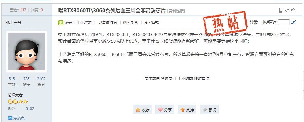 Az ITHome az AIB belső fórumairól értesült, hogy mostantól alacsonyabb szállításra számítanak az RTX 3060-as sorozatú grafikus kártyákból szeptember végéig.