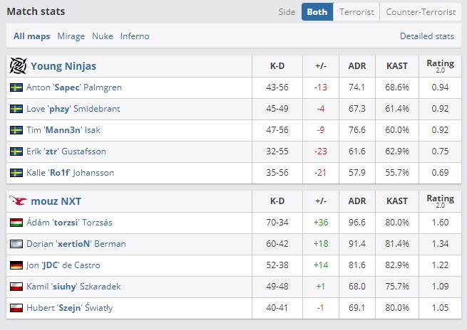 Ahhoz pedig kétség sem fér, hogy a döntő legjobbja volt a magyar játékos. Elképesztő teljesítményt nyújtott Torzsi, 70/34-es K-D aránnyal és 1.60-as Rating 2.0 értékkel zárta 3 map után a mérkőzést. Érdemes Redditen is végiggörgetni a kommenteket, a külföldi, sokszor túl kritikus CS:GO rajongók is csak elismerő szavakkal tudták illetni az ifjú tehetséget. Úgy tűnik jól döntött a mouz NXT vezetősége, amikor a magyar játékos igazolása mellett tették le a voksukat 2021 júniusában.