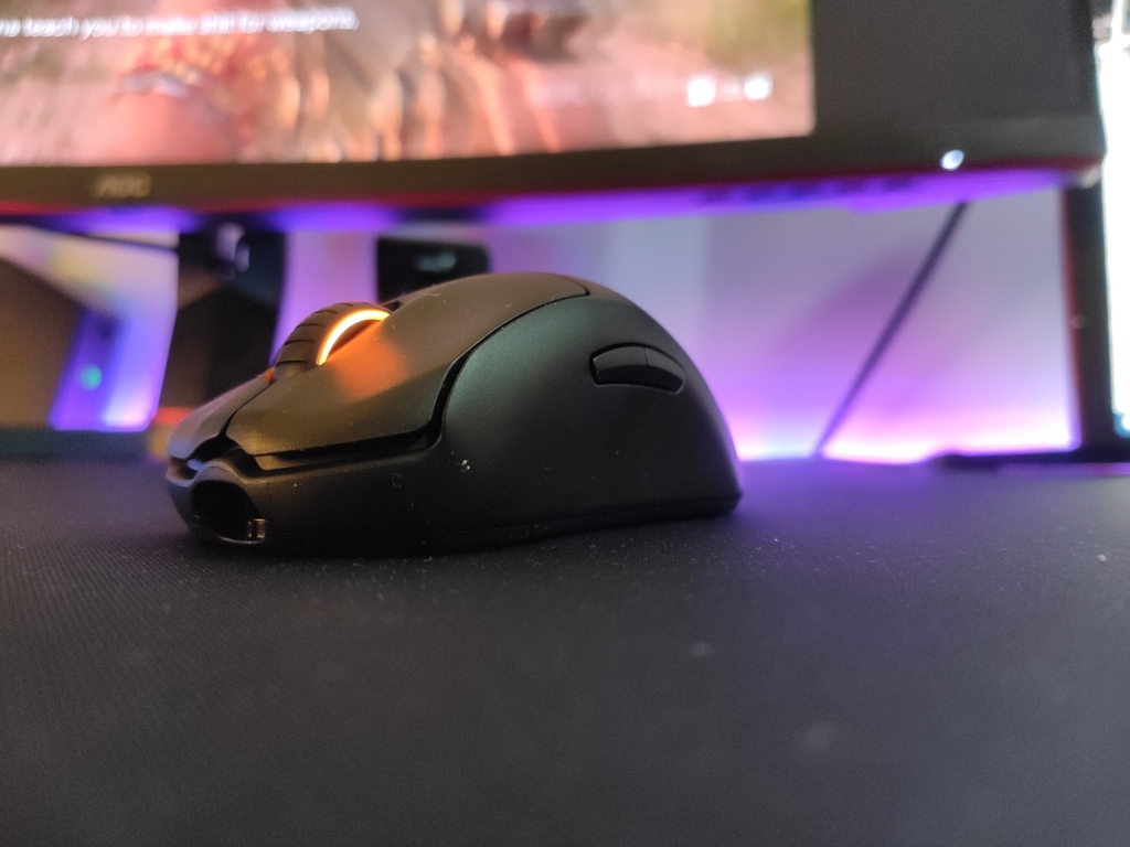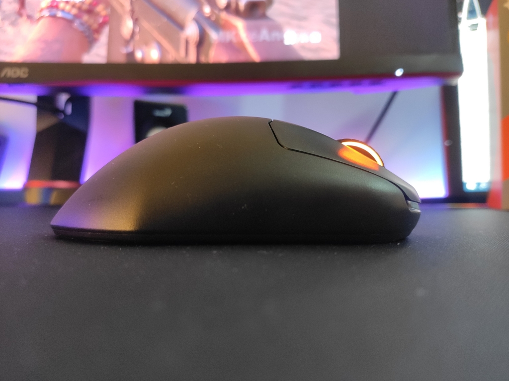 A Prime Wireless nem hivalkodó, de azért már első ránézésre látszik, hogy komolyabb ragadozó. A külsejét VDI30 Taktilis mikrotextúra borítja, ami egy elképesztő elegáns kifejezés, de a valóságban azért tapintattunk már kellemesebb fogású egeret. Ettől eltekintve egyáltalán nem rossz a külső borítás.