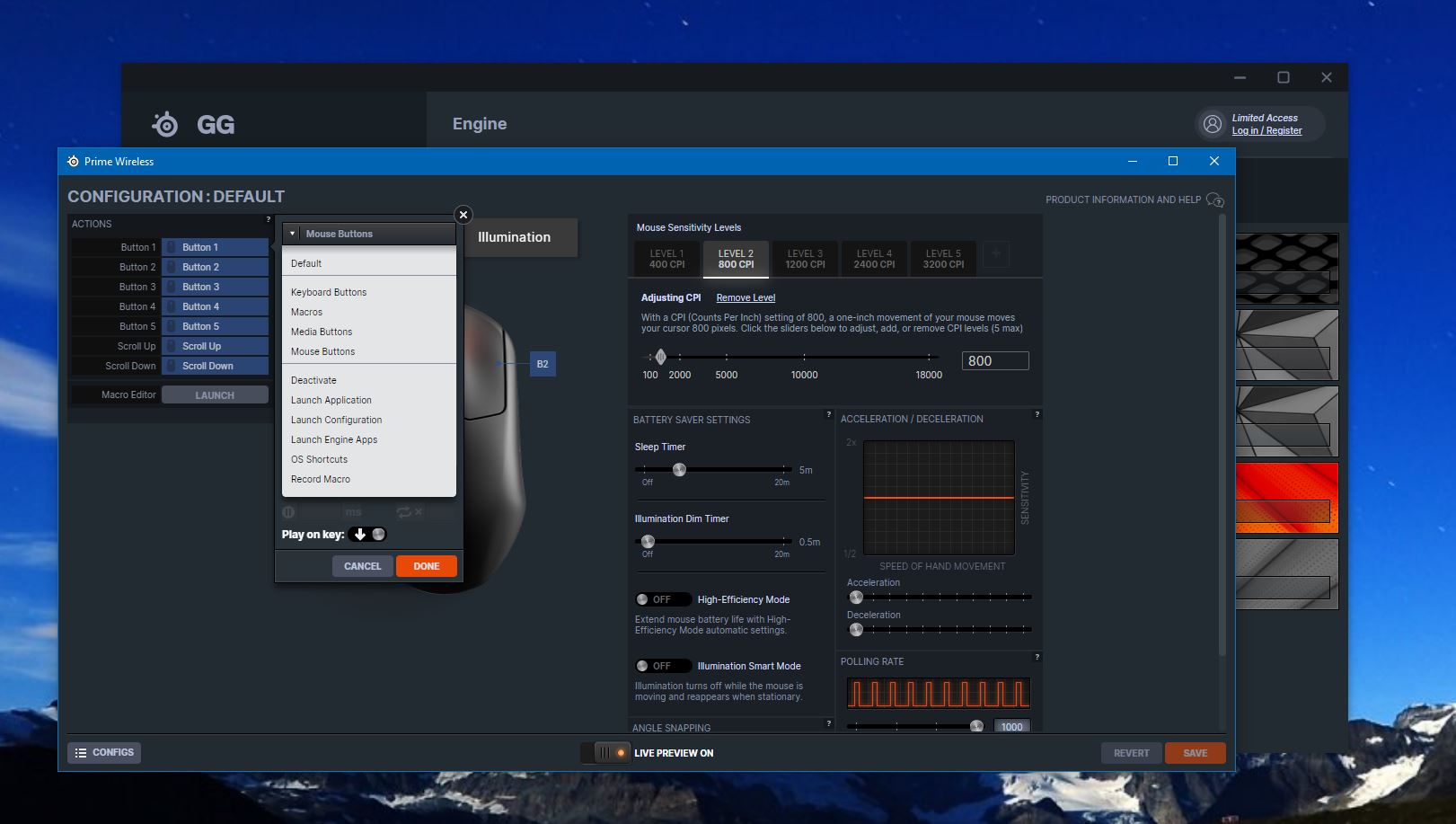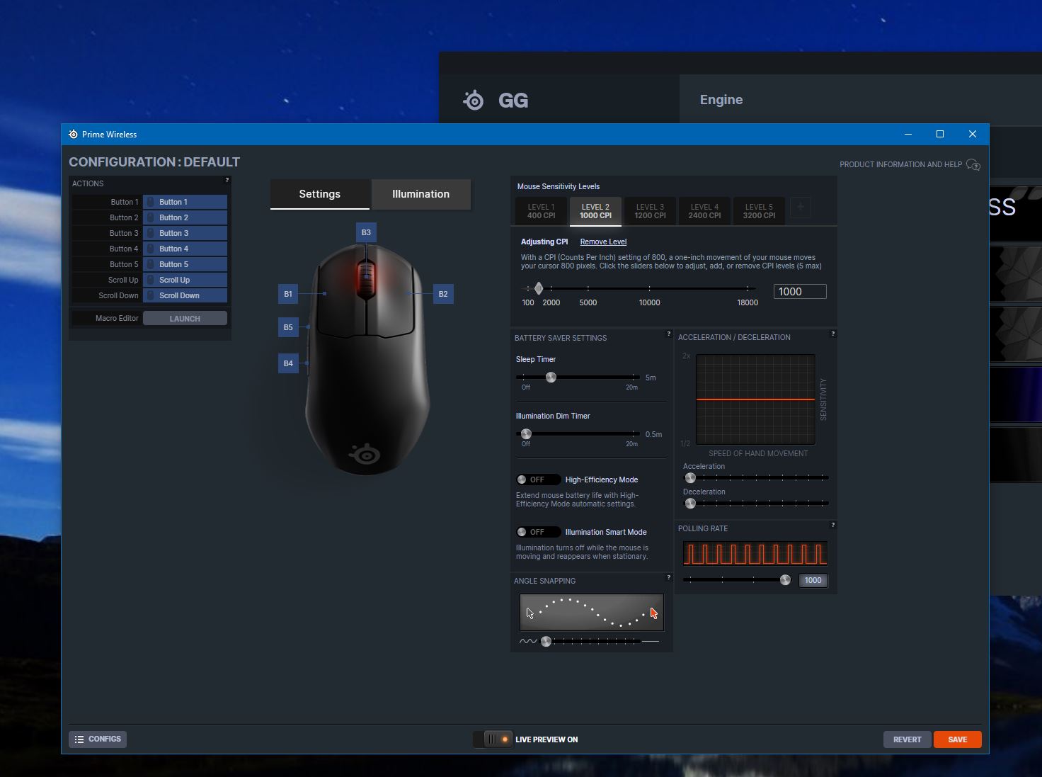 A kezelőfelület maradt a korábbról megismert, ahol rengeteg dolgot állíthatunk: Polling rate, gyorsítás, DPI, profilok, sőt még makrók is vannak. Sőt, pofonegyszerűen beállíthatóak. Egyedül  LOD maradt ki a felsorolásból, ami őszintén kicsit hiányzik is, ugyanis magasabbról is érzékel jelenleg, ami néhányszor pont rosszul jött ki. Ezt későbbi firmware frissítésben persze simán orvosolhatják, használat közben is érkezett egy, szóval a támogatásról gondoskodik a gyártó.