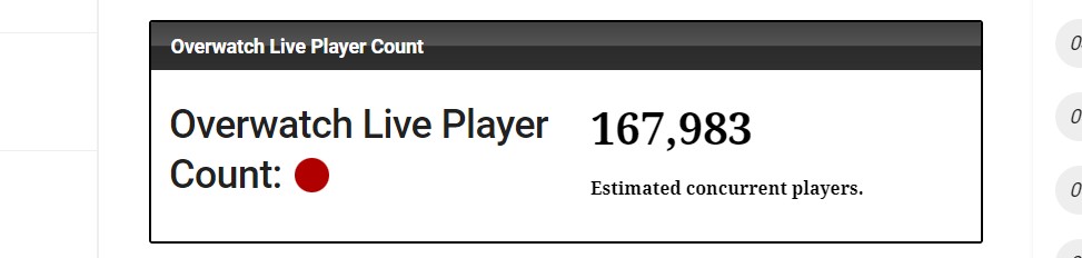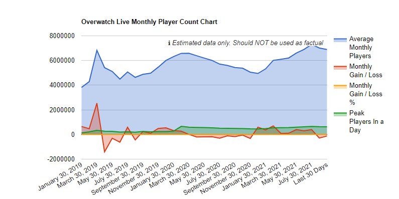 A Blizzardtól kapott utolsó Overwatch játékosszám 40 millió volt még 2018 májusában, a játék második évfordulójának eseményekor. Hónapokkal később azonban a Blizzard havi 37 millió aktív felhasználóról számolt be a 2018. augusztusi negyedéves jelentésben.