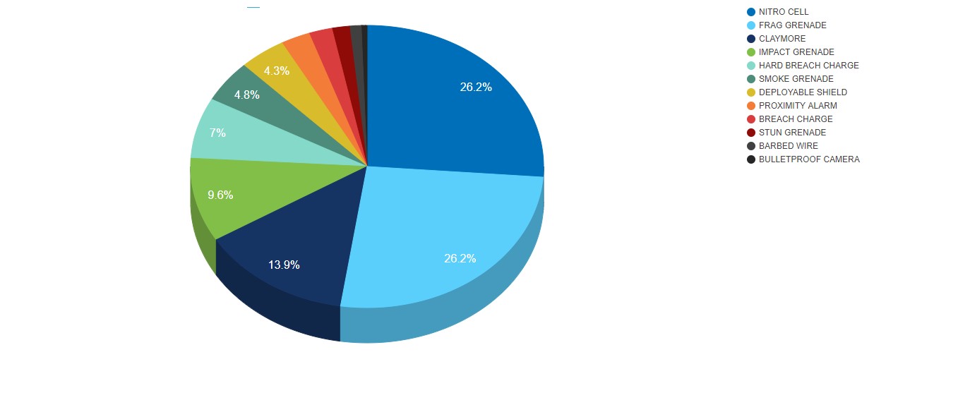 A helyzet az, hogy egyenlő számú szavazat érkezett végül két eszközre is. Amint az alábbi képen is látható, a Nitro Cell és a Frag gránát van az első helyen a leginkább kedvelt eszközök közül. A harmadik a Claymore.