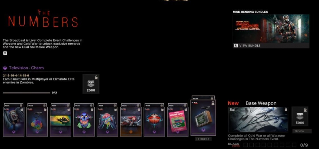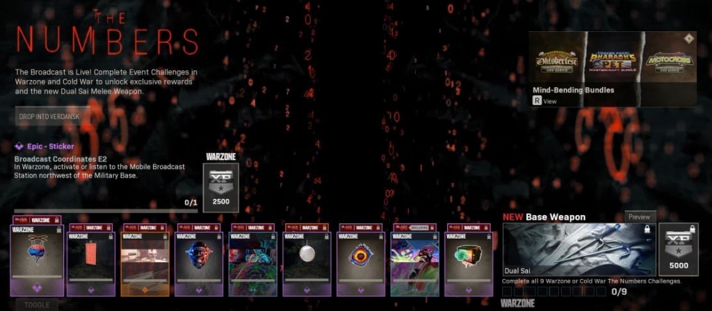 Ahogy azt már korábban tudni lehetett, kedd este 19:00-kor elstartolt a „The Numbers” névre hallgató Warzone/Cold War eseménysorozat. Mindkét módban lehetőségünk van teljesíteni a küldetéseket a kozmetikai tárgyakért és Sai melee fegyverért.