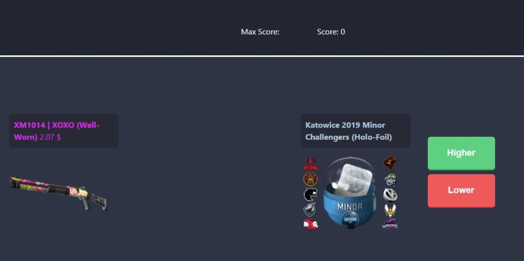 A fenti tény ihlette meg a csgogame.net weboldalon található mini-játék készítőjét is. Ha rád tör az unalom és úgy érzed, hogy vágod a CS:GO tárgyak árait, akkor kiválóan elütheted az időt pár percig. A játék felépítése meglehetősen egyszerű: el kell döntenünk, hogy 2 adott CS:GO tárgy közül a jobb oldali drágább vagy épp olcsóbb-e.