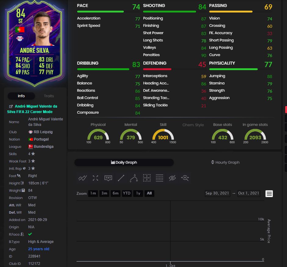 A tavalyi évben Silva három Inform lapot, és egy POTM kártyát kapott és mivel bajnokságot nem váltott, csak csapatot, számíthatunk rá, hogy ismerős környezetben is hasonló teljesítményt ér el. A portugál csatárt nem mondanám állandó kezdőnek és eddig még a gólzsák se szakadt ki, de én reménykedem benne, hogy magára talál.
