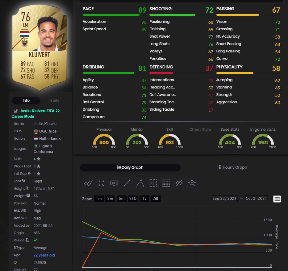Sajnos ez a játékos egy ideig nem fog a kezdőben szerepelni. Az adottságai megvannak hozzá, hogy jó lap lehessen, de kelleni fog egy pár TOTW, hogy viszont lássuk őt a különböző gárdákban. A játék elejére jó lehet egy elfutó szélsőnek csereként beállva. Én mindenesetre kiszedem és megnézem mit hoz a jövő. Még egy kis ideig nélkülözni kell, de a francia bajnokság remek hely lehet a hollandnak szárnyai bontogatására és a gólszerzésre.