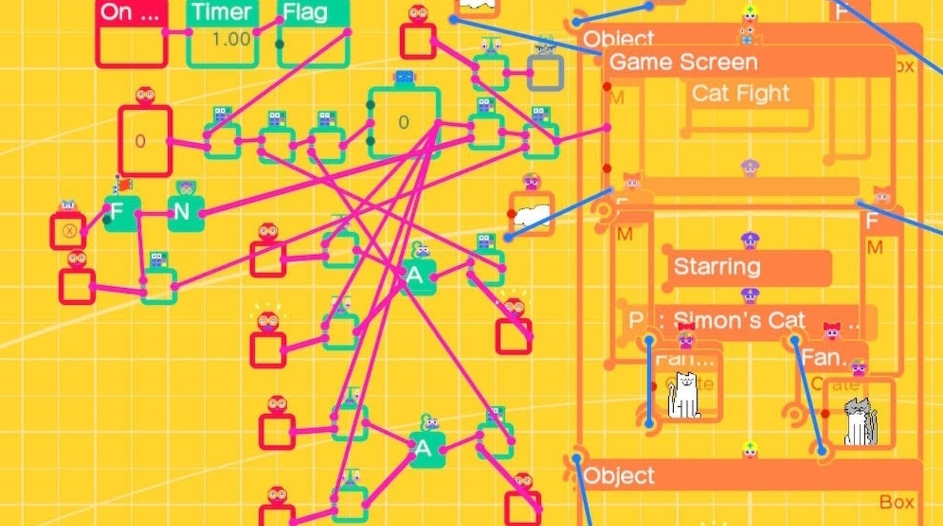 A tálalás tipikus „nintendósra” sikeredett, jópofa, játékos és átlátható. A száraz kódnyelvek helyett egy vizuális programnyelvet használhatunk, amiben a kulcsszereplők úgynevezett Nodonok. Ezek felelősek a különféle akcióparancsokért, mint például a mozgásért, ugrásért. Ha esetleg egy ufós játékot szeretnénk gyártani, akkor a tervezőtáblán a játékunkhoz adhatunk egy UFO Nodont, ami majd később egy űrlényként fog szolgálni játék közben. Sőt, olyan Nodonnal is operálhatunk, ami érzékeli, ha egy karakter hozzáér egy bizonyos objektumhoz (láda, alma, kerék, stb.), s ha ez megtörtént, akkor power-uppal látja azt el. Ezeket a Nodonokat kombinálhatjuk is, hogy jóval bonyolultabb programláncokat hozzunk létre.