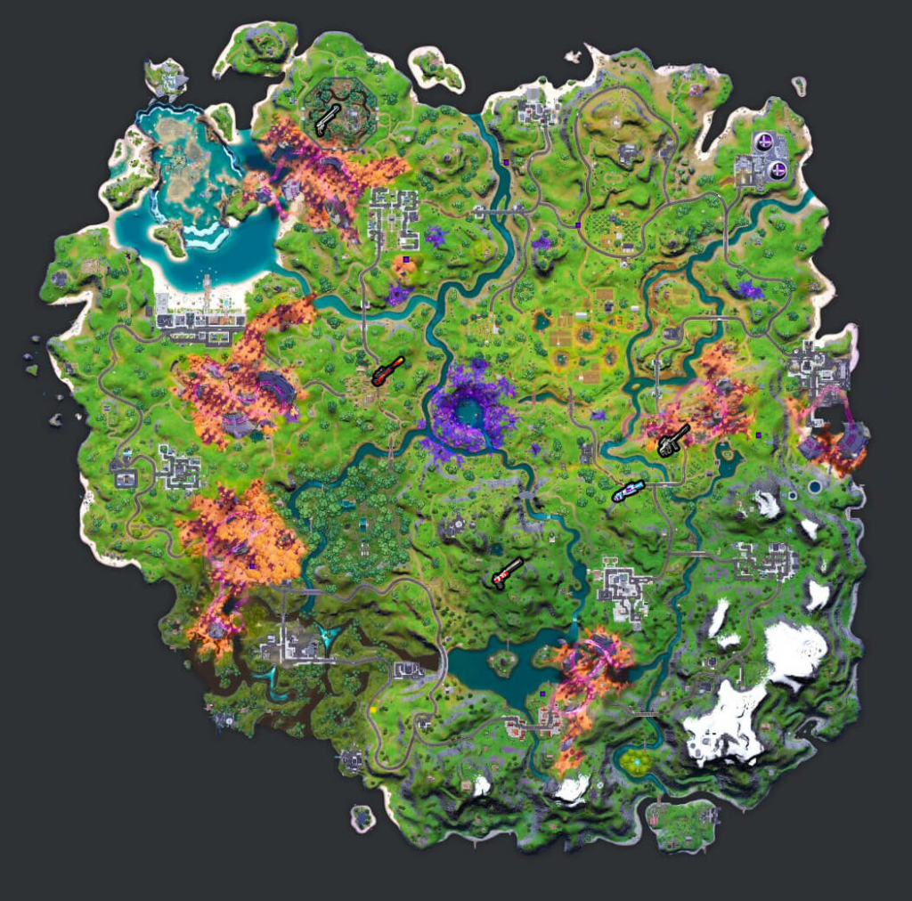 A fenti térkép segítségével a vizuális típusú játékosok is hamar megtalálhatják az NPC-ket és a hozzájuk társított fegyvereket. Jogosan merülhet fel a kérdés, hogy miért ennyire szegényes a felhozatal. Nos, az Epic Games jó szokásához híven ezúttal is folyamatosan adagolja majd az újdonságokat a Fortnite szigetére.