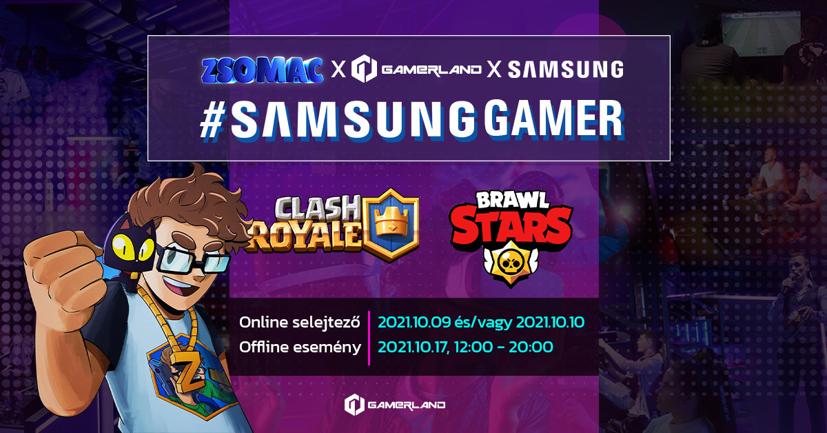 Ha többet szeretnél megtudni az eventről, olvasd el a részleteket a Facebook eseményben. Azonban akkor se csüggedj, ha nem jutottál be a döntőbe vagy nem hajt a versenyszellem, ugyanis rengeteg felejthetetlen élmény vár majd így is Gamerlandben: baráti hangulatú közös játékok, Clash Royale miniversenyek, Gamerland kihívások, ládanyitás élőben és sok más izgalmas program! Azt meg szinte felesleges megemlíteni, hogy Zsomac rajongóknak kötelező kilátogatni, hiszen dedikálás mellett közös képet is csinálhattok vele, sőt megpróbálhatjátok megverni 1v1-ben, vagy a haveroddal társulva 2v2-ben! A versenyeken persze részt vehetsz a saját telefonoddal/tableteddel, vagy a Samsung által biztosított csúcskategóriás eszközök egyikén.