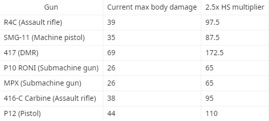 Az új rendszer értelmében szorzója lenne a fejlövéseknek, például 2,5x, 3x stb. sebzés, a fegyverek tűzgyorsaságához (fire rate) mérve. Vagyis alacsonyabb FR = magasabb fejlövés-szorzó. Vagy változó fejlövés-szorzó is lehet, a fegyvertípustól függően (AR, SMG, DMR stb.). Bár ez egyes fegyverekre (például a Frost lassú SMG-je) negatívan hatna.
