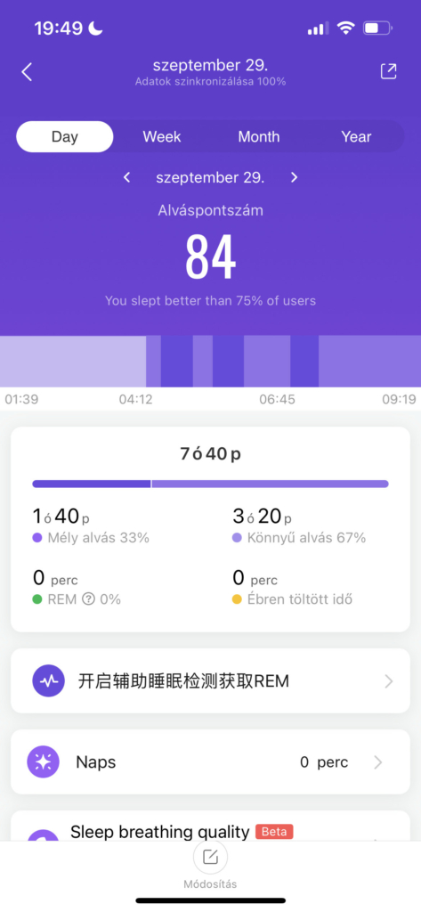 Az applikációban láthatjuk majd később az alvásunk részletes kiértékelését is, nem csak az időtartamot, hanem az egyes alvási ciklusok eloszlását is megtekinthetjük. Természetesen nem orvosilag hitelesített eszközről beszélünk, ám meglepően pontosan dolgozik az algoritmus.